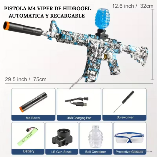 PISTOLA M4 VIPER DE HIDROGEL AUTOMATICA Y RECARGABLE