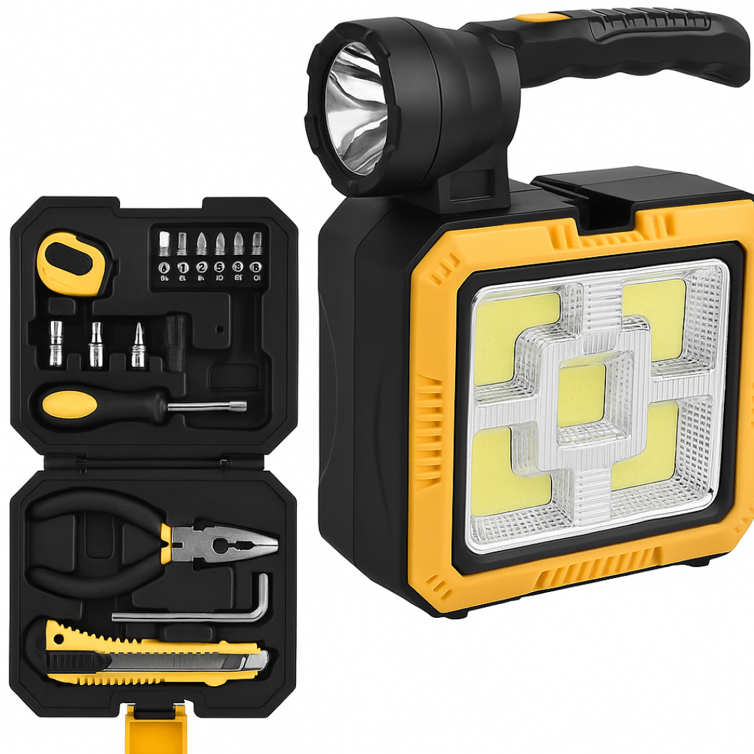 ¡Luz y herramientas en un solo equipo, sin depender de baterías! ☀️🔧