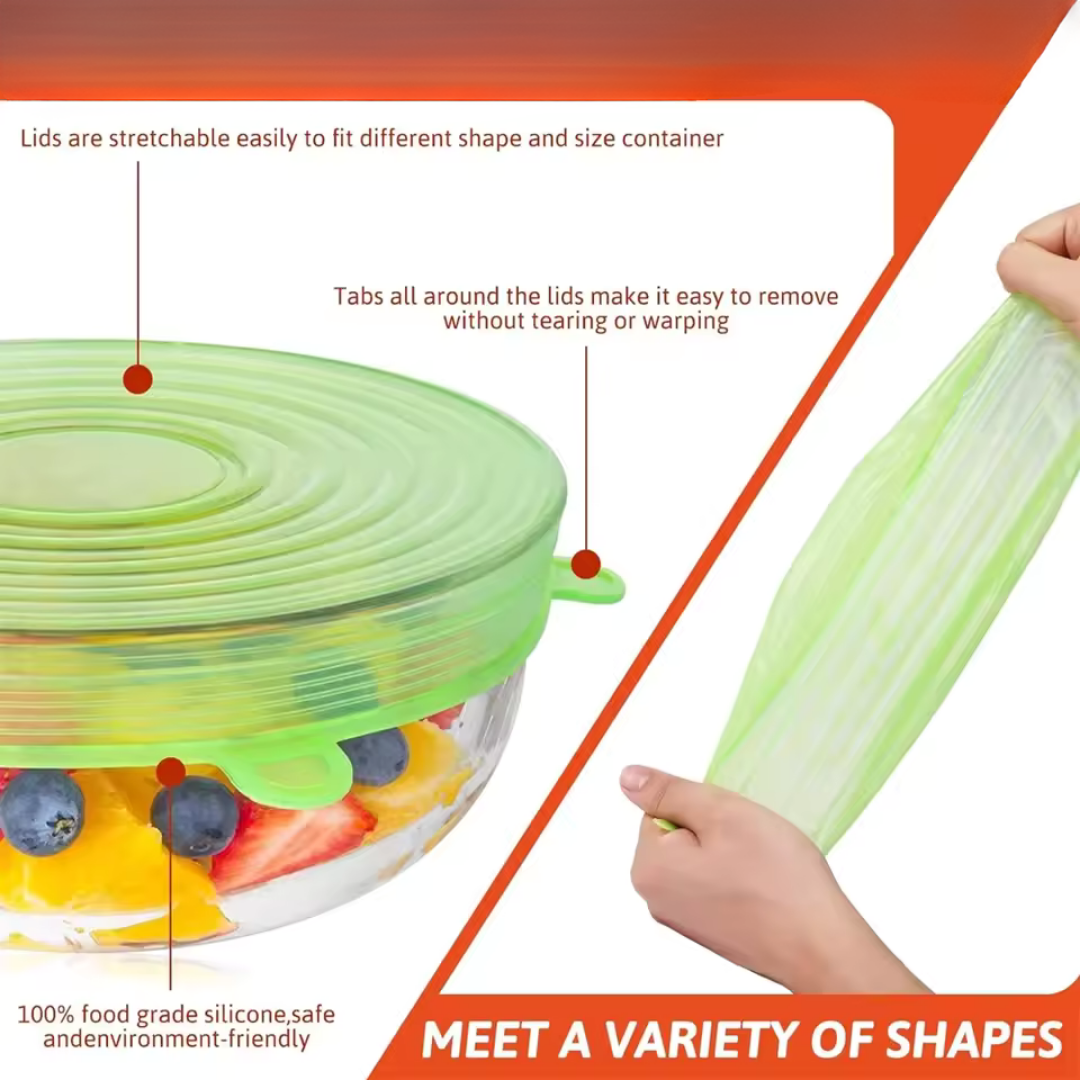 🟢 TAPAS DE SILICONA REUTILIZABLES – Conserva tu comida sin plásticos ni desperdicio